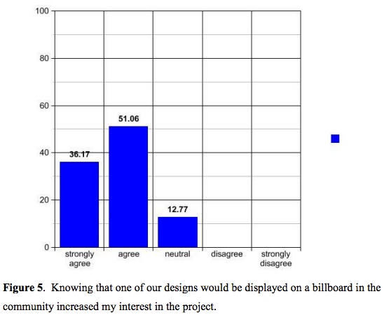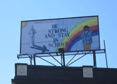 - Students created billboard designs demonstrating their understanding of persuasive techniques, art, and community issues.